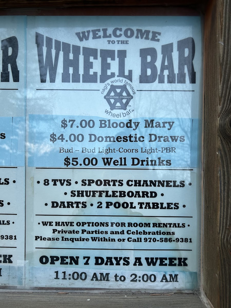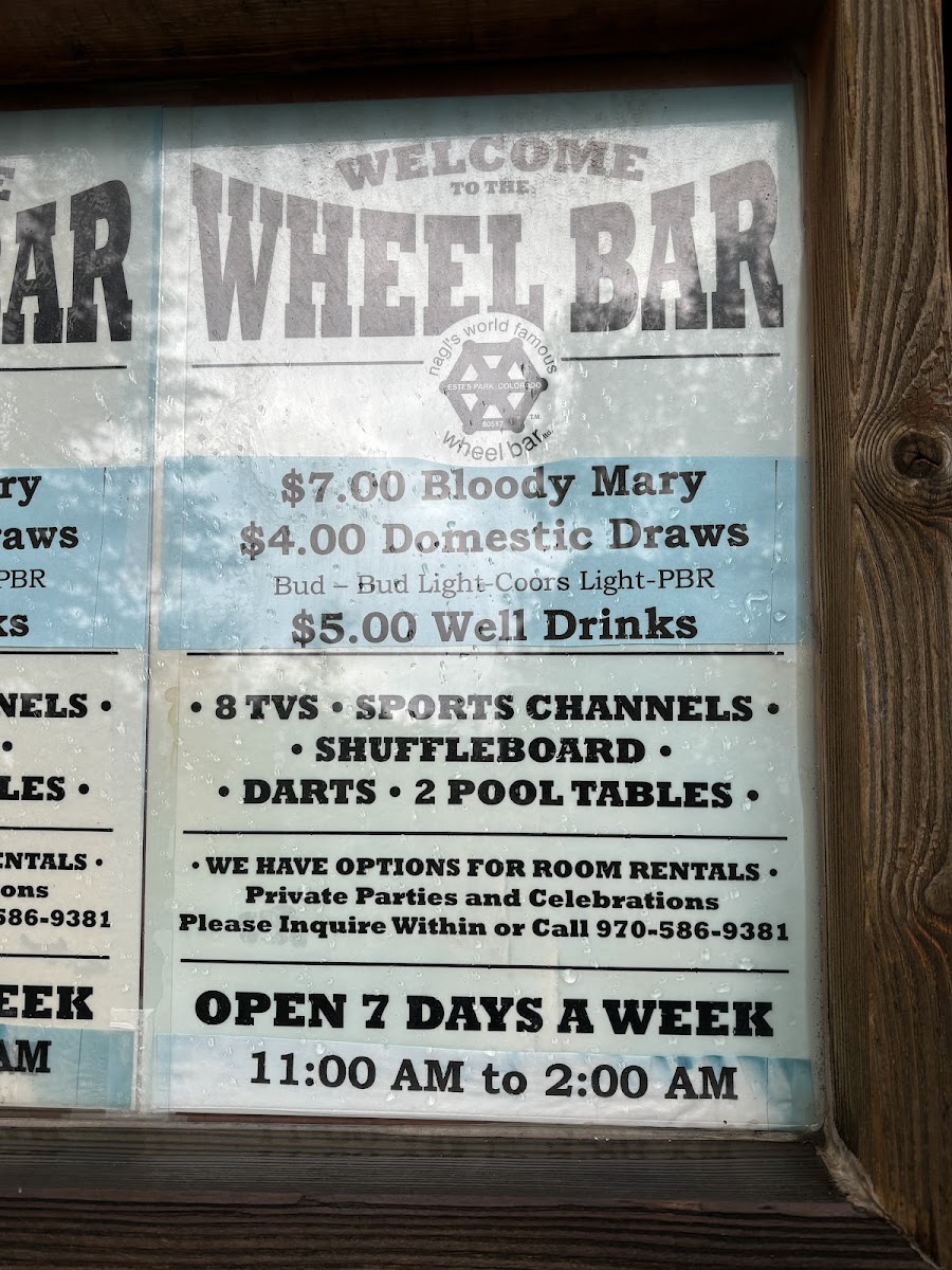 The menu at Wheel Bar focuses primarily on beverages, featuring a variety of beers and a selection of cocktails. Guests can find classic drink options including Bloody Marys made from scratch, as well as other cocktails such as sangria. Although no food items are listed or typically served, the beverage menu supports casual social gatherings and after-event drinks.
